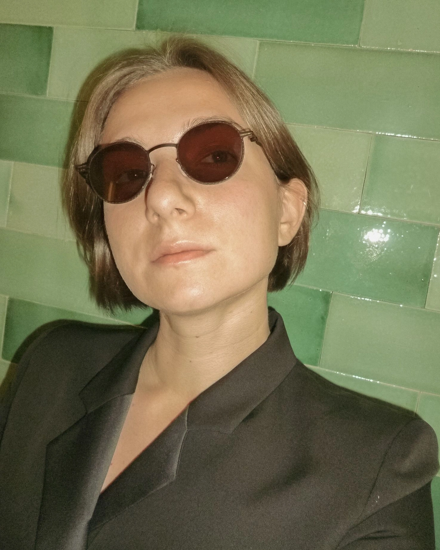 Material: light stainless steelPatented spiral hingeAcetate temple tips and silicone nose pads. Tinted sun lenses with 100% protection against UVA/UVB rays and an anti-reflective inner coating