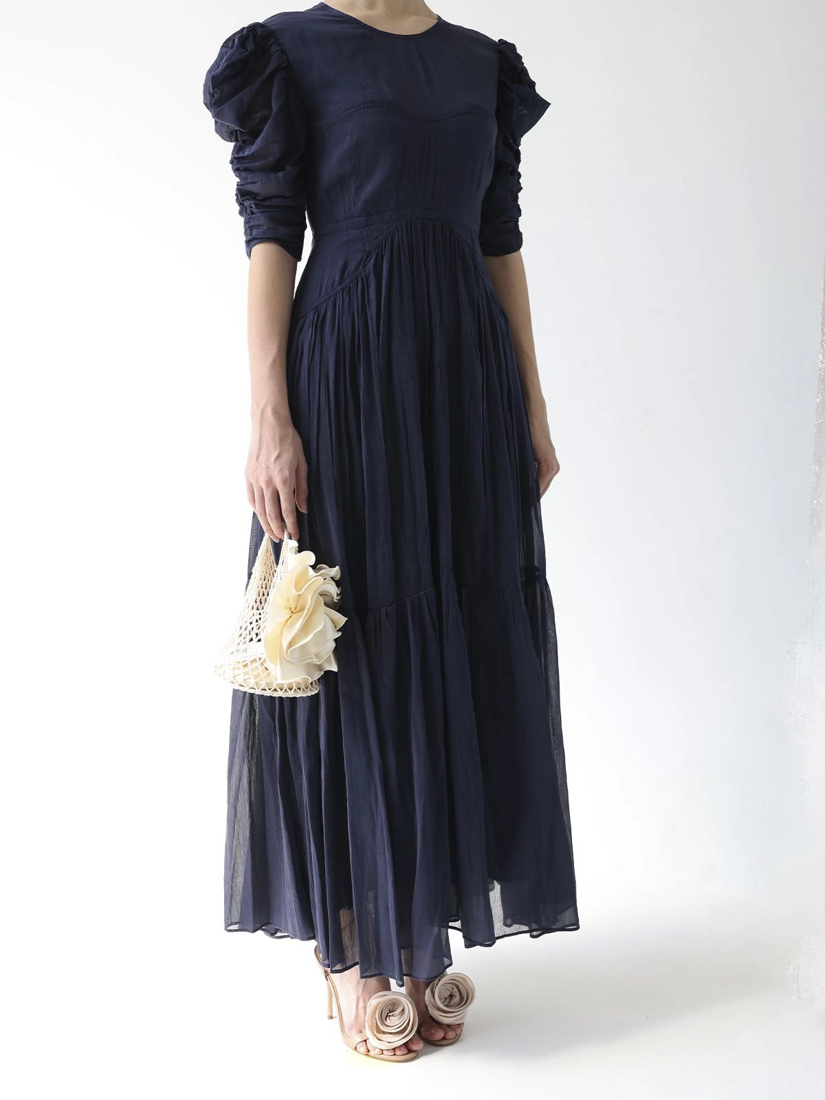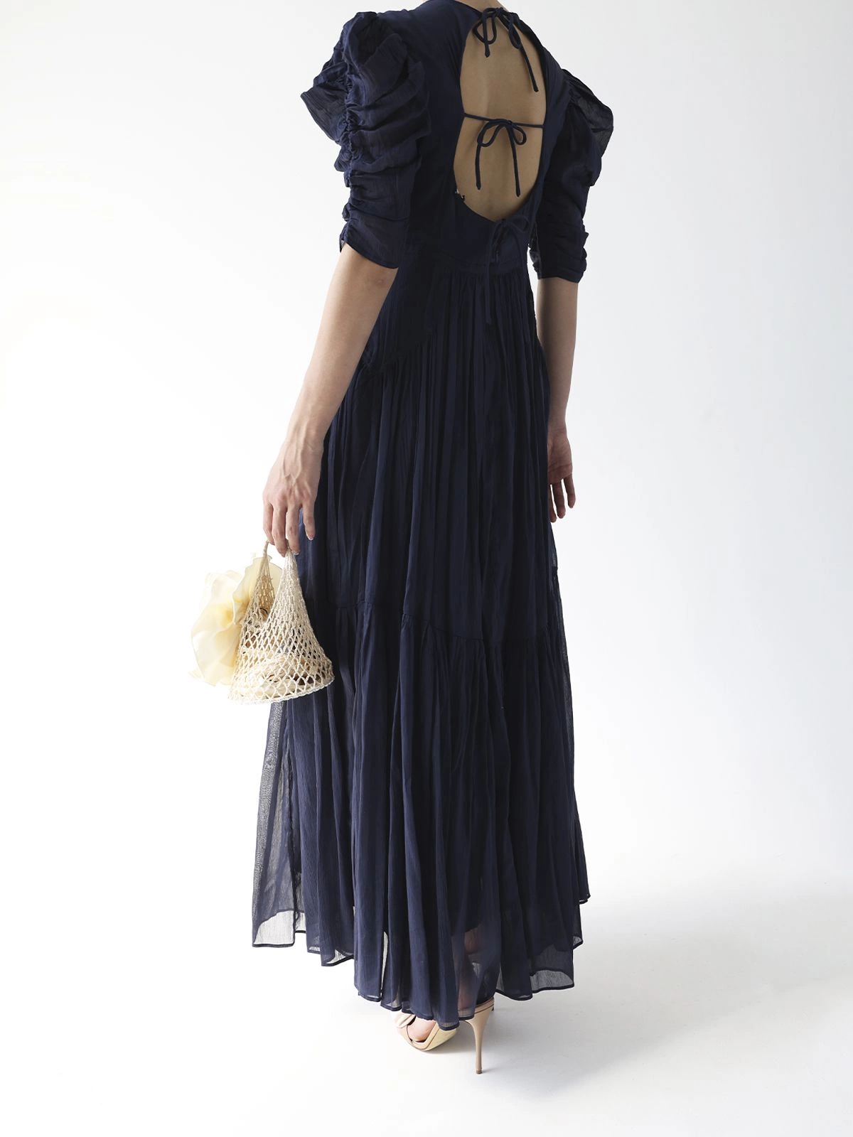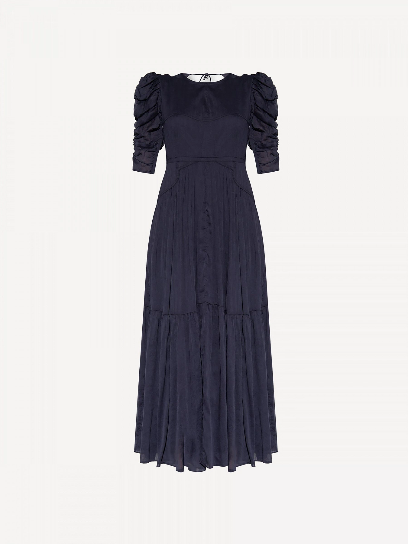 Это платье-макси от ISABEL MARANT умело сочетает в себе минимализм и привлекательность. Оно состоит из двух слоев ткани из хлопка и шелка, имеет круглую горловину и приталенный, а затем слегка расклешенный к талии крой. Короткие рукава демонстрируют знаковый для Дома силуэт: они объемные в плечах и облегающие в локтях.Овальный вырез, украшенный тремя шнурками, откроет вашу спину.