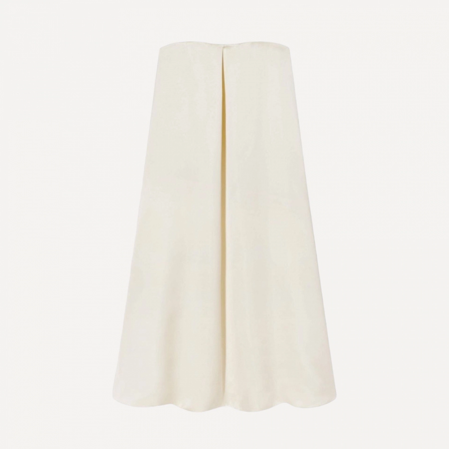 Платье-бюстье от CO в цвете сливочного масла, свобного кроя и длины миди. Имеет вшитый корсетный топ и покрыт силиконовой строчкой сверху, засчет чего платье не будет спадать.