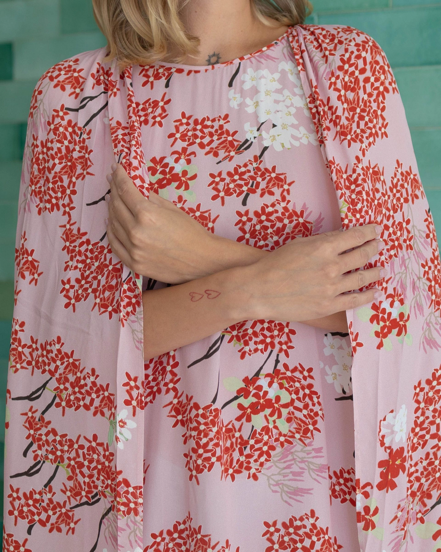 Платье Minnie - потрясающее платье-накидка, переходящее в платье длиной в пол. Благодаря универсальному стилю вы можете набросить накидку на плечи для классического образа или позволить ей струиться позади вас. Благодаря более свободному покрою Minnie легко сочетает в себе комфорт и элегантность, позволяя вам заявить о себе, куда бы вы ни пошли.
