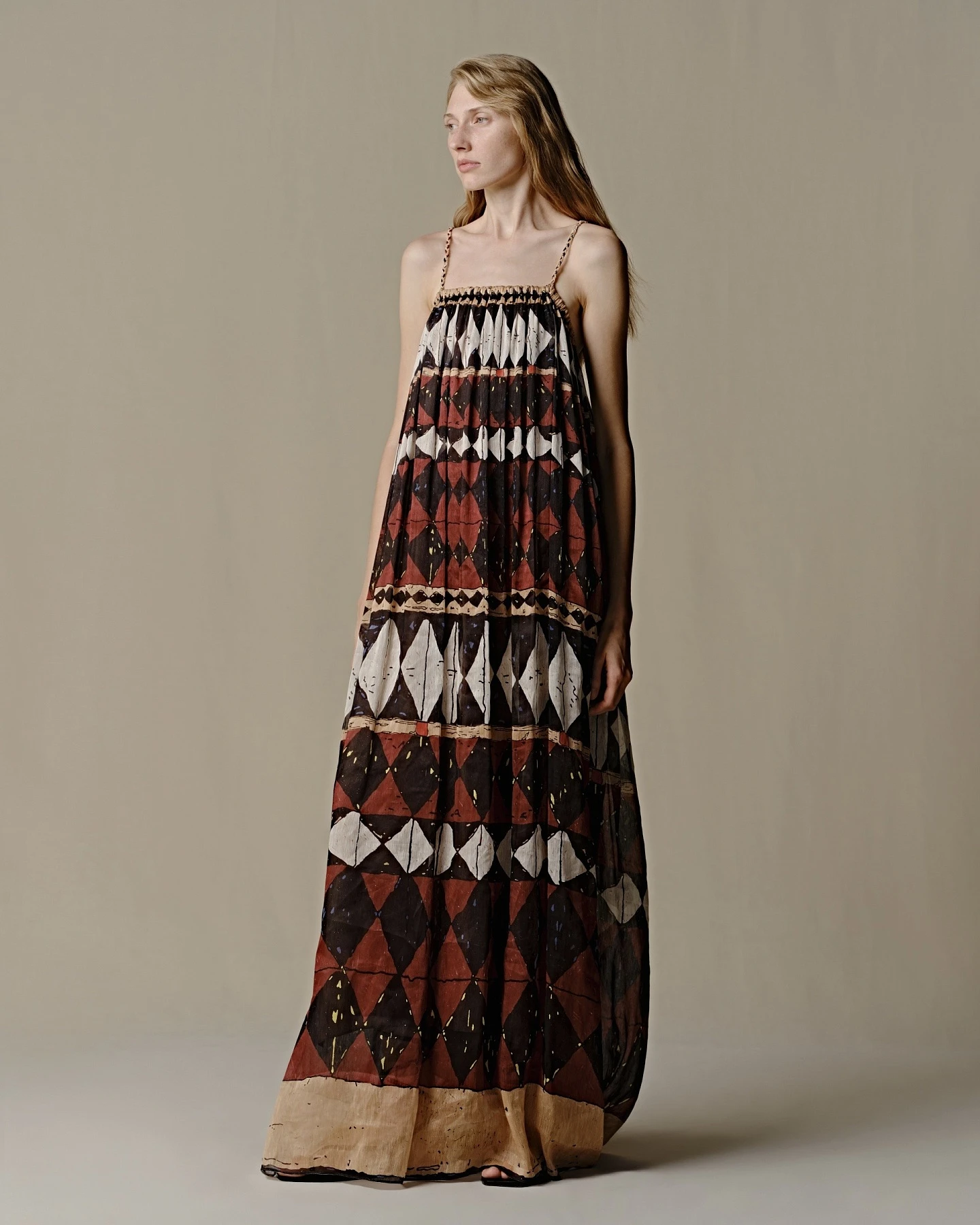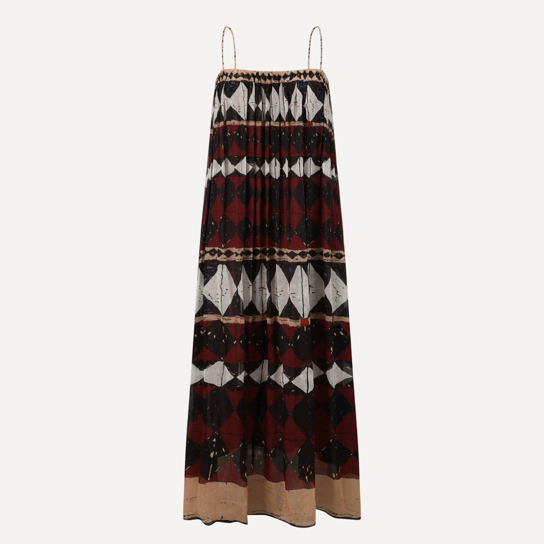 INTO THE EAST Silk and Linen Geometric Halter Dress