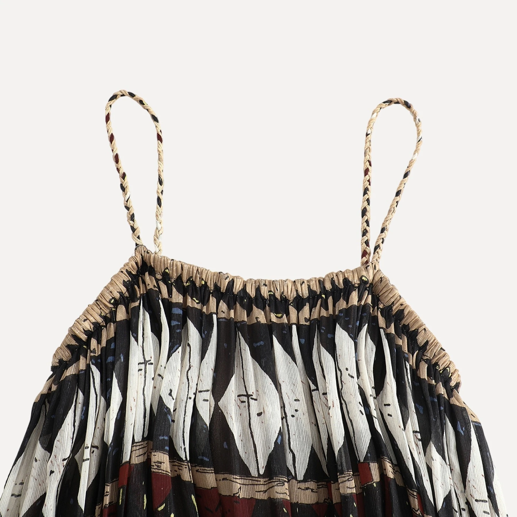 Silk and Linen Geometric Halter Dress