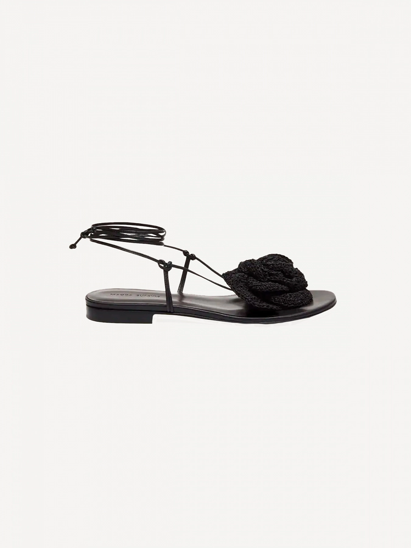 MAGDA BUTRYM WRAP AROUND FLAT FLOWER SANDALS CROCHET BLACK