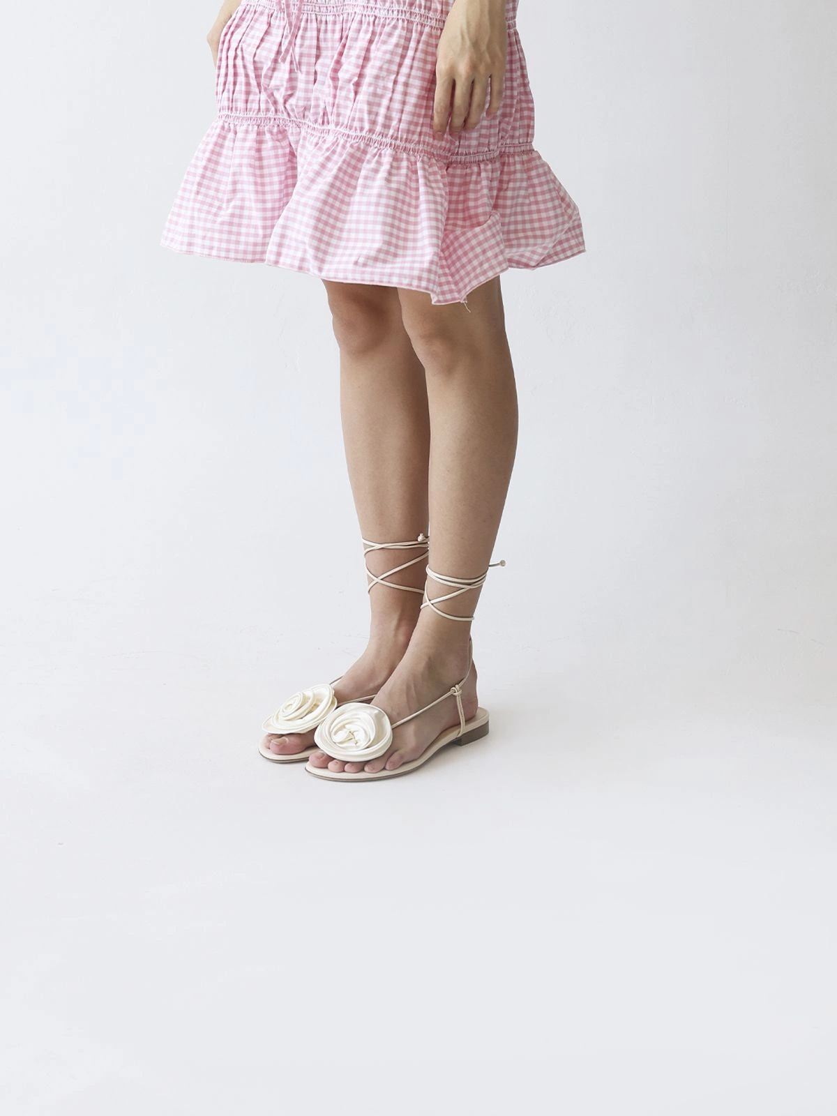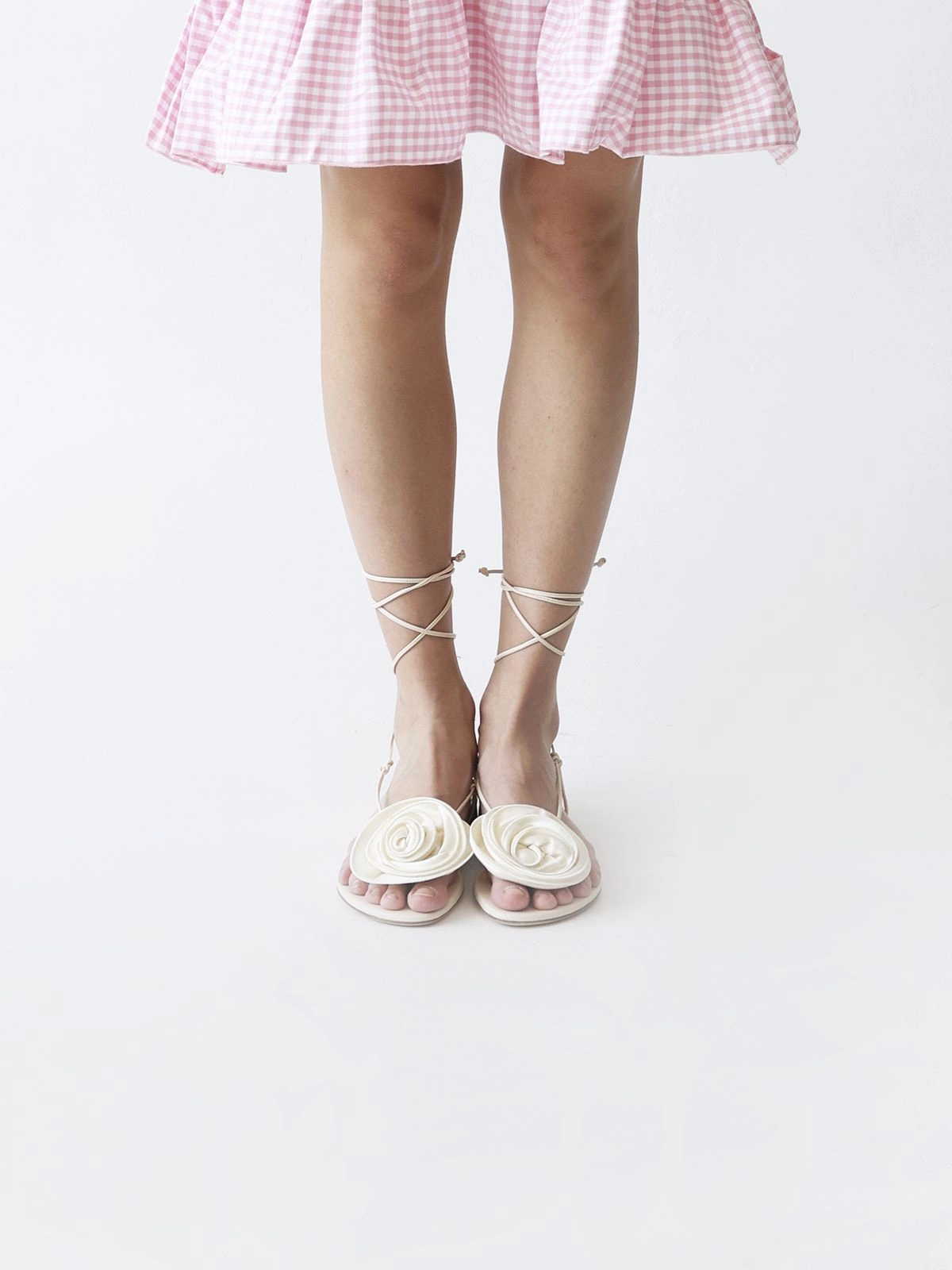 MAGDA BUTRYM WRAP AROUND FLAT FLOWER SANDALS SATIN CREAM