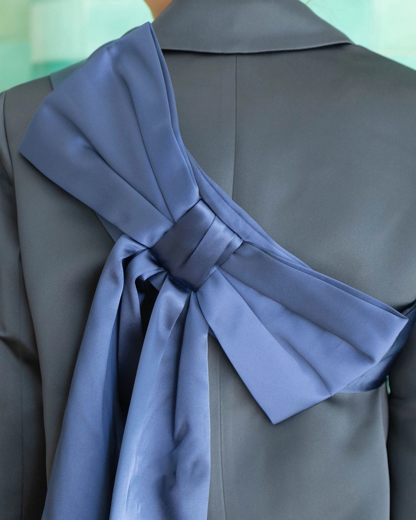 Регулируемая сумка с поясом цвета морской волны Изготовлена из плотного атласа Предназначена для ношения через плечо или в качестве ремня Скрытый кармашек на молнии