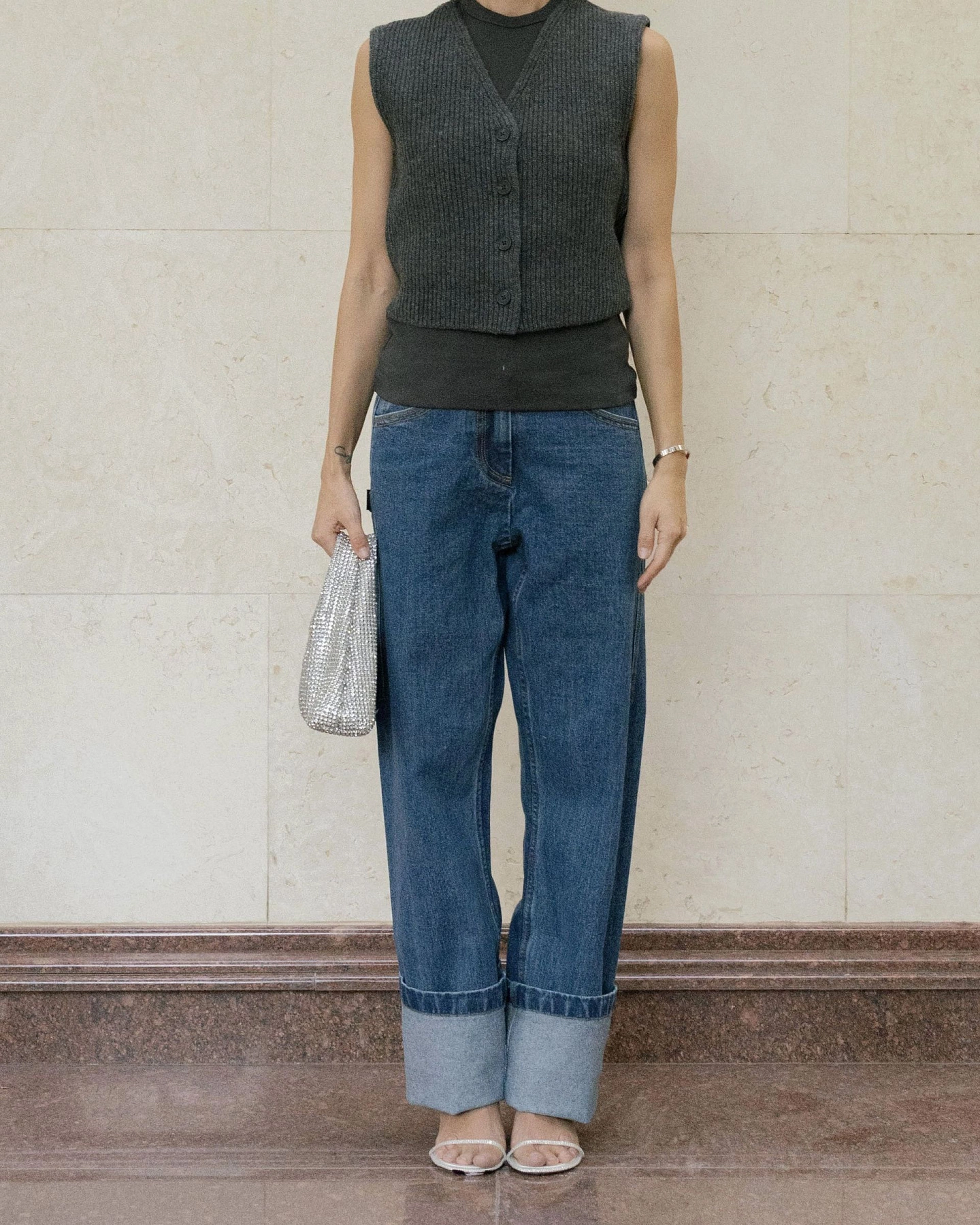 Вязаный жилет Low Classic угольного цвета сделан из бленда кашемира и шерсти. Имеет укороченный крой и застежку на пуговицы.